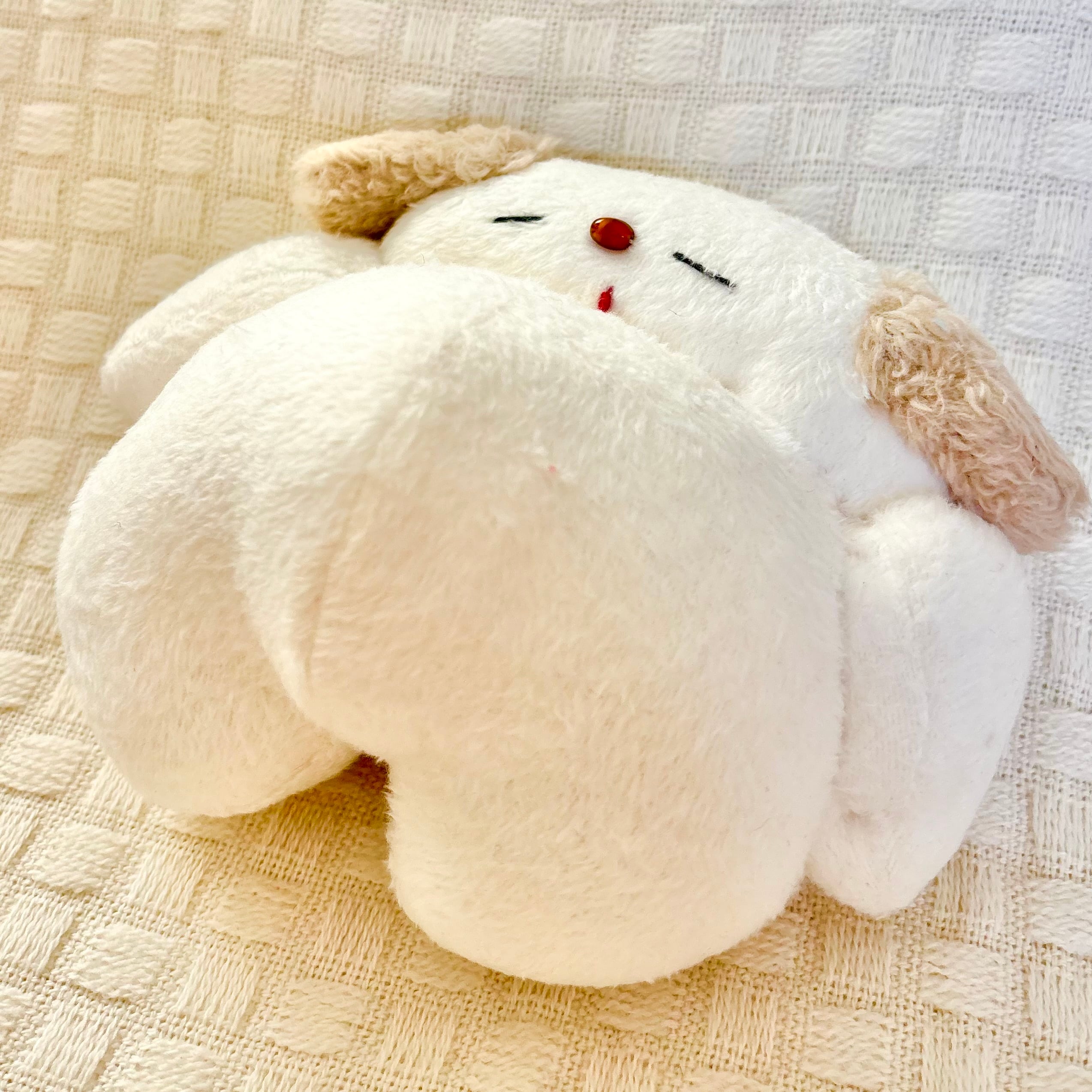 食べすぎてお腹ぽんぽんの犬のぬいぐるみです