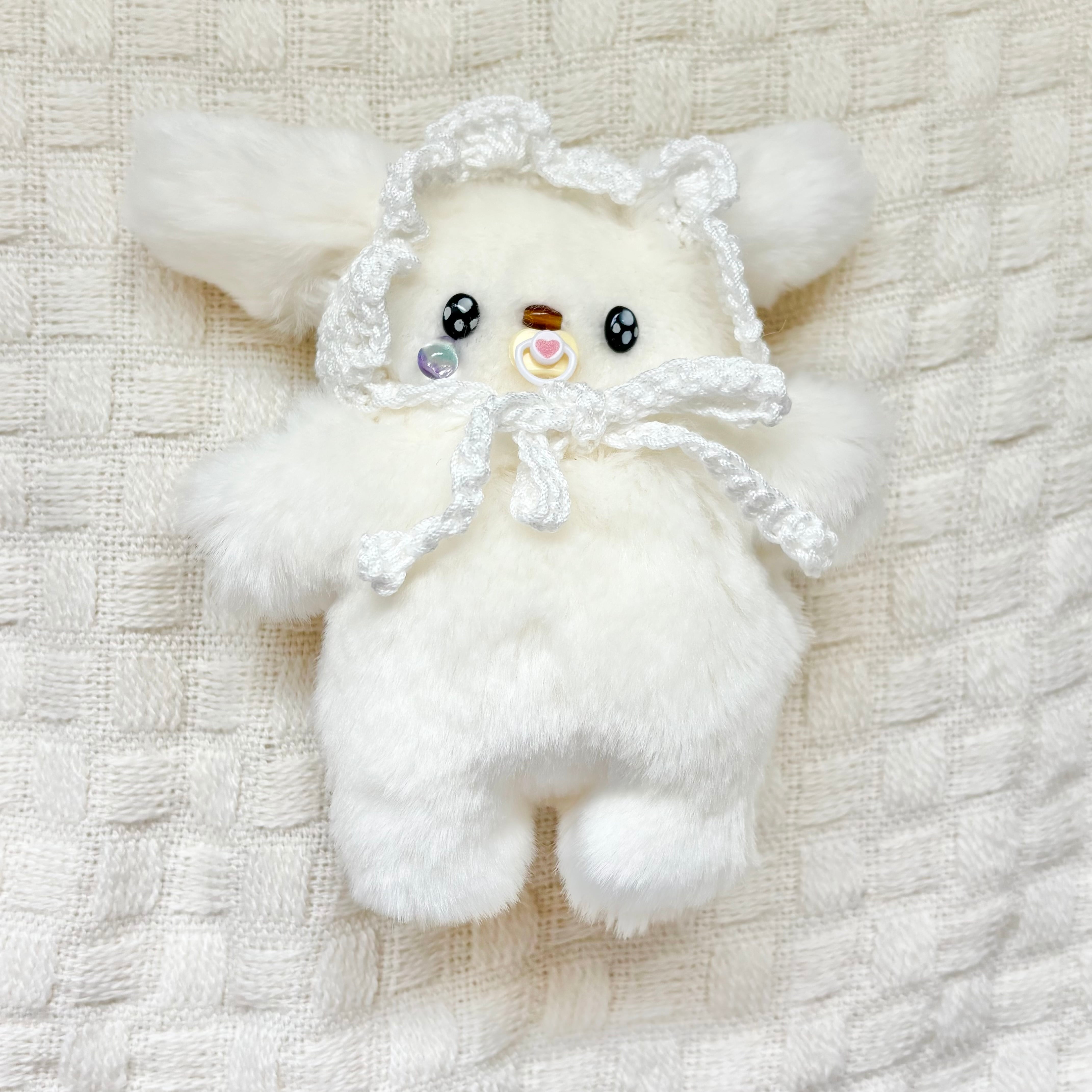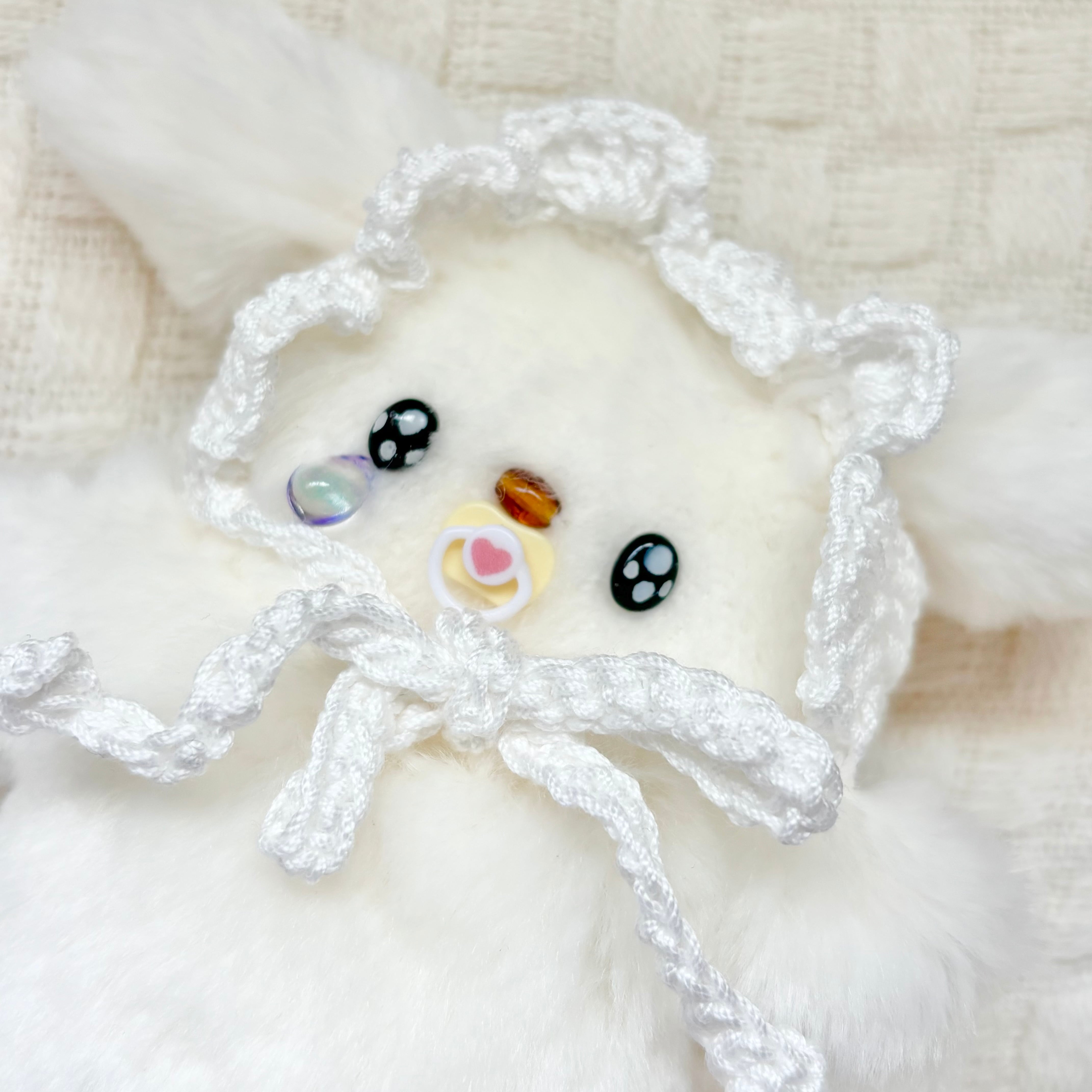 今回のボンネットは編んだタイプです