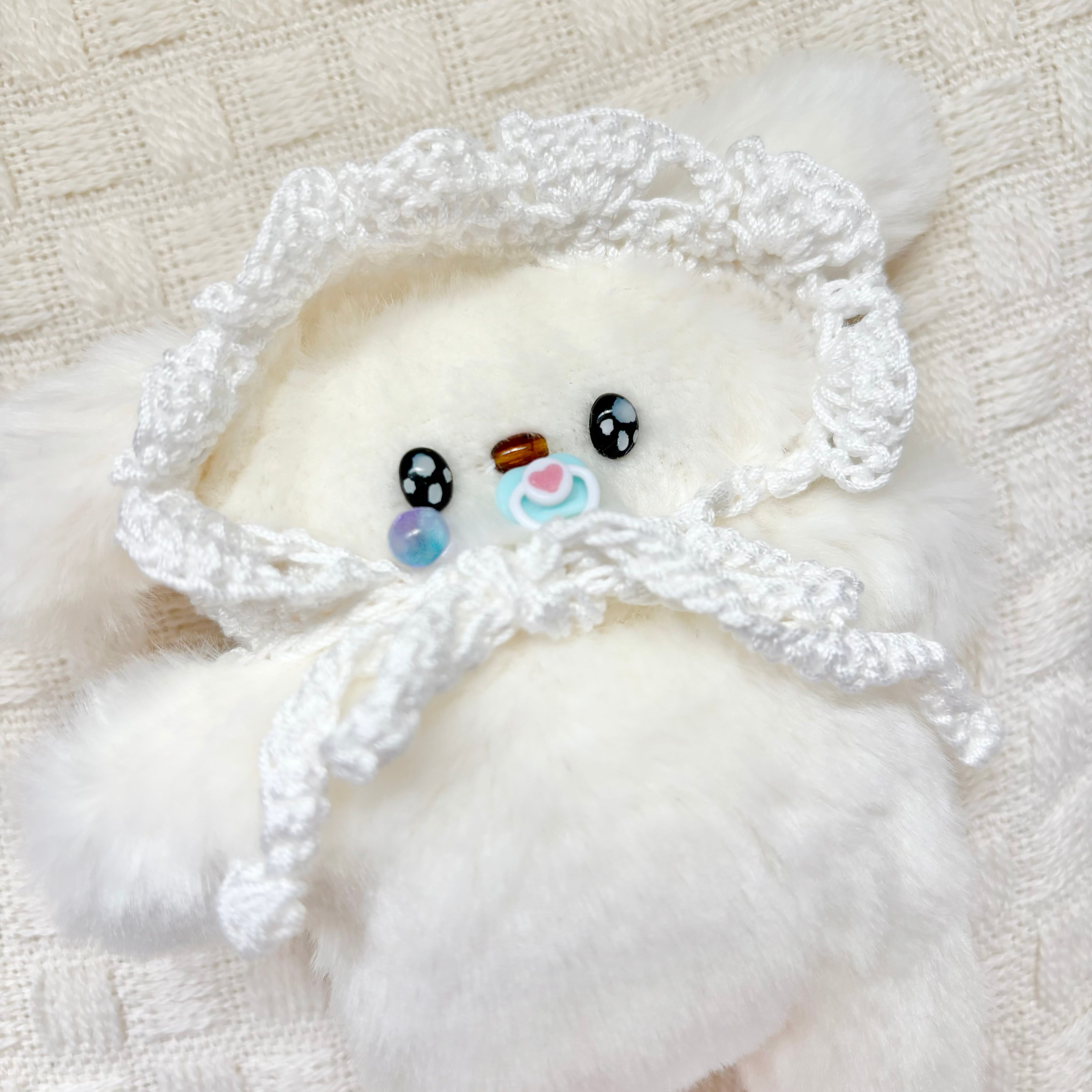 今回のボンネットは編んだタイプです