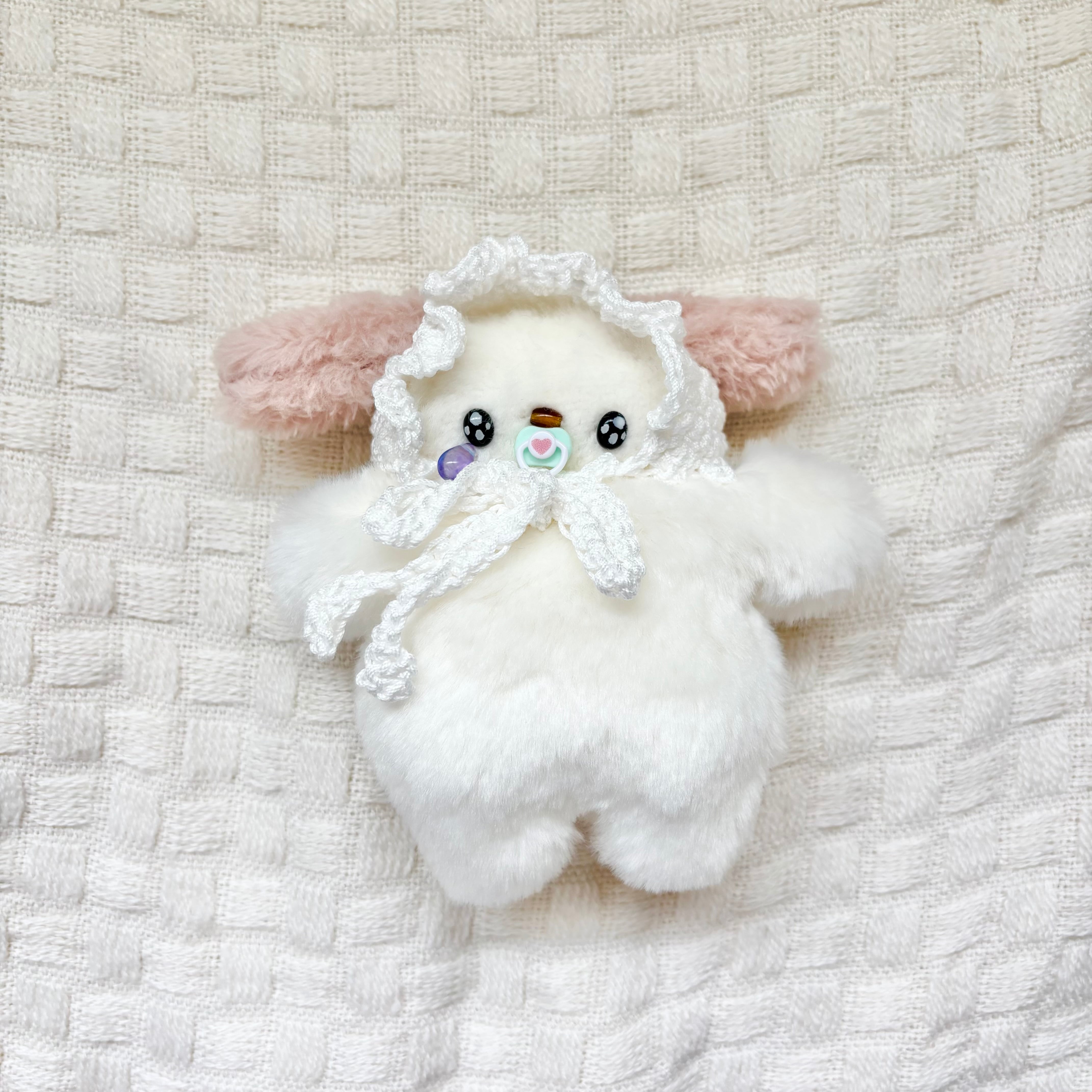 今回のボンネットは編んだタイプです