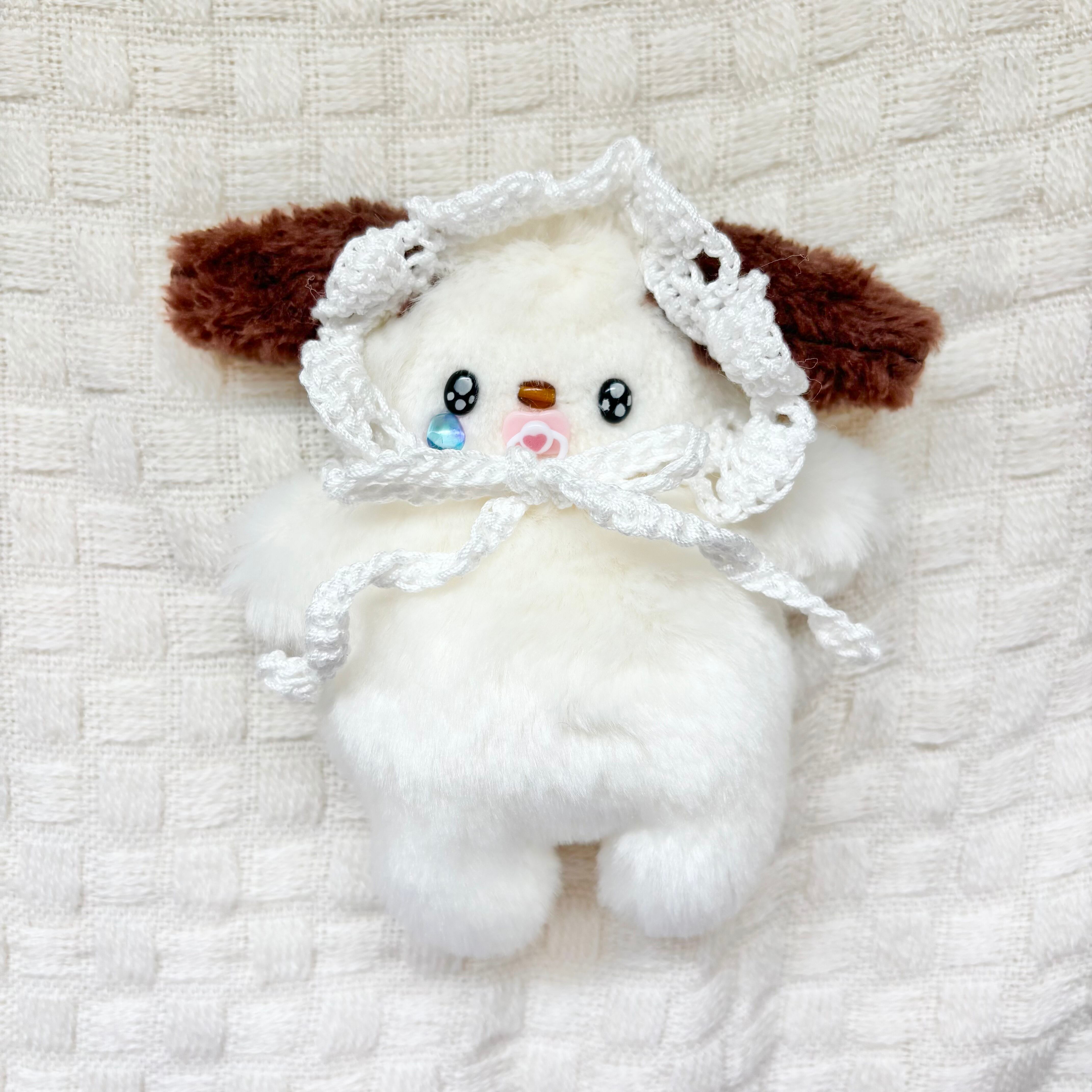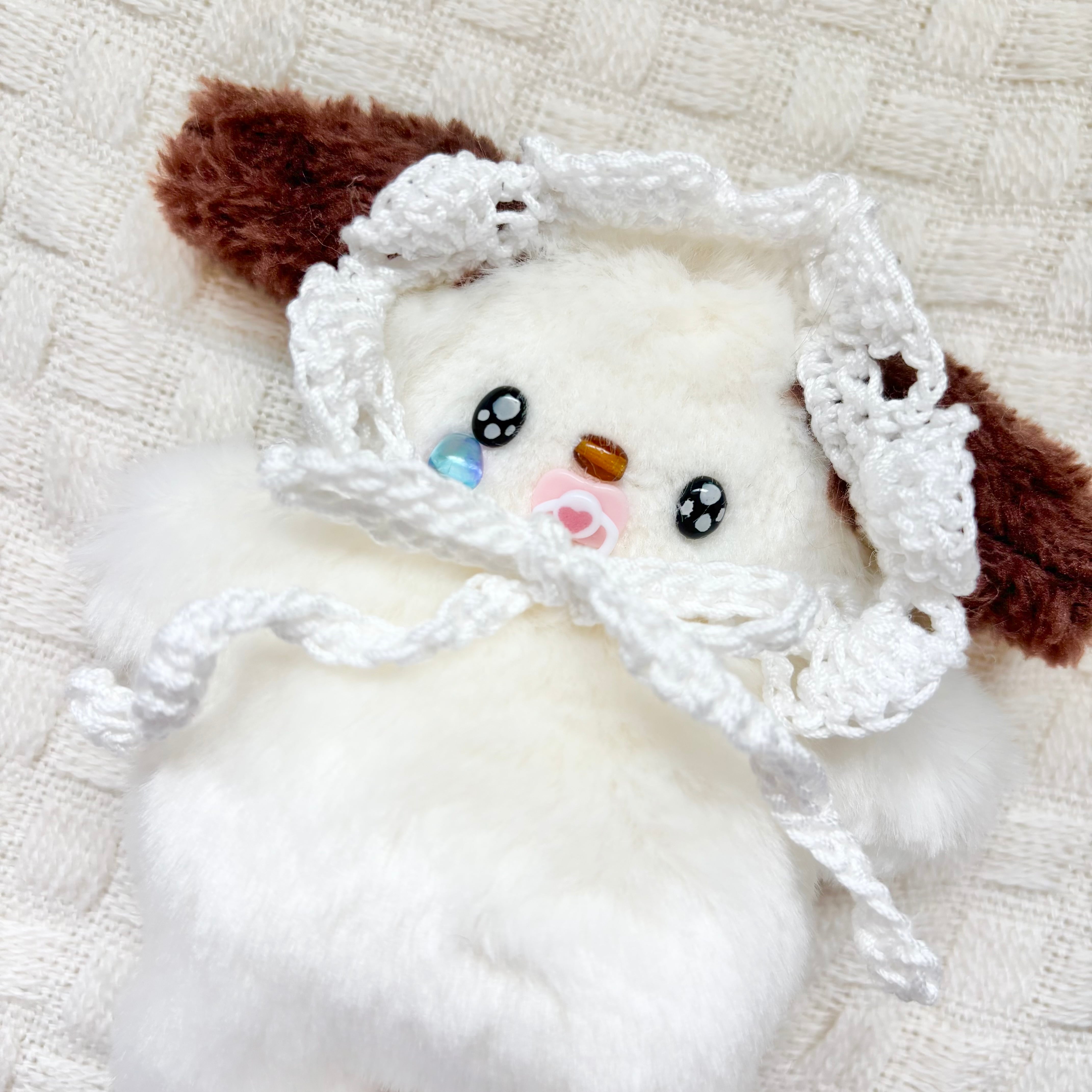 今回のボンネットは編んだタイプです