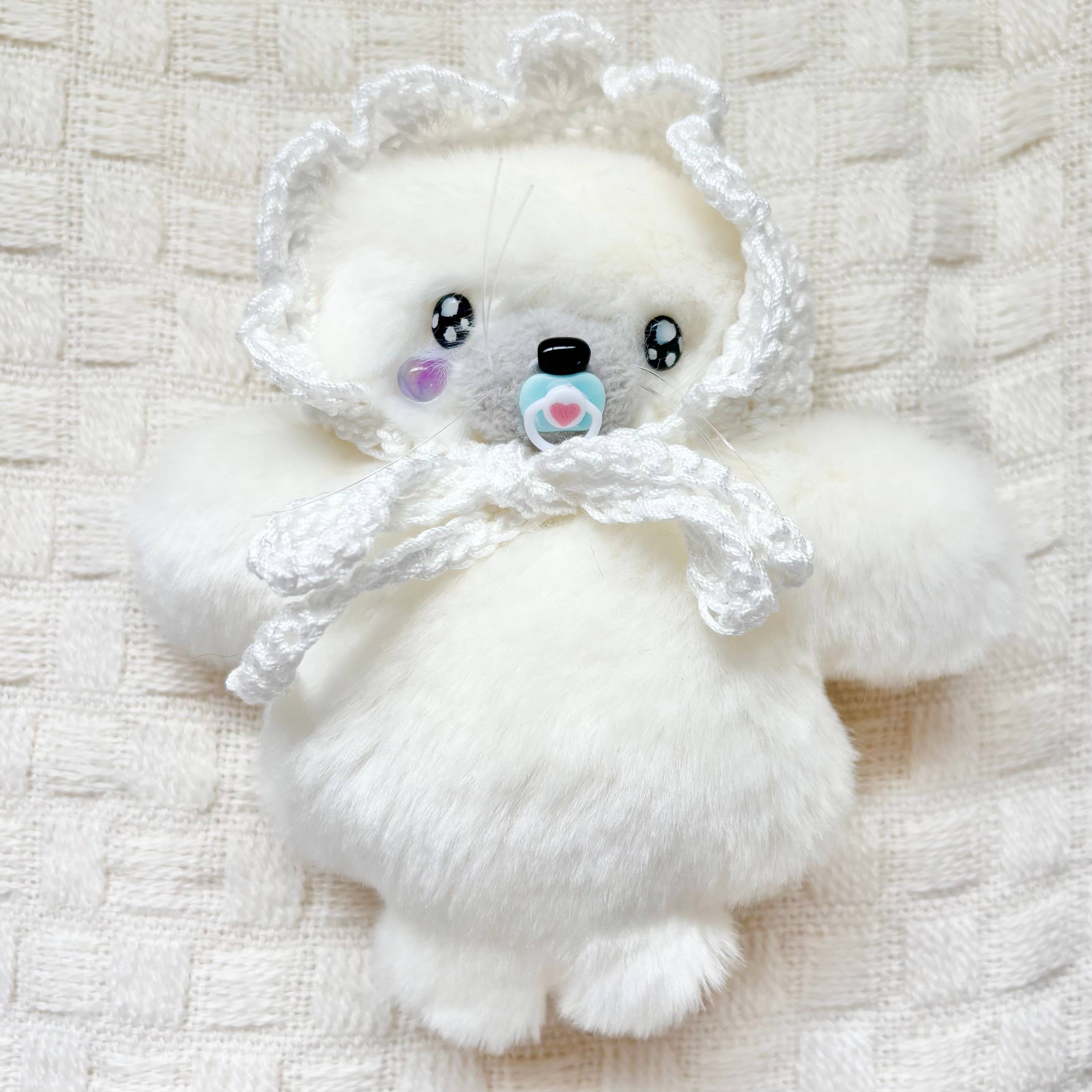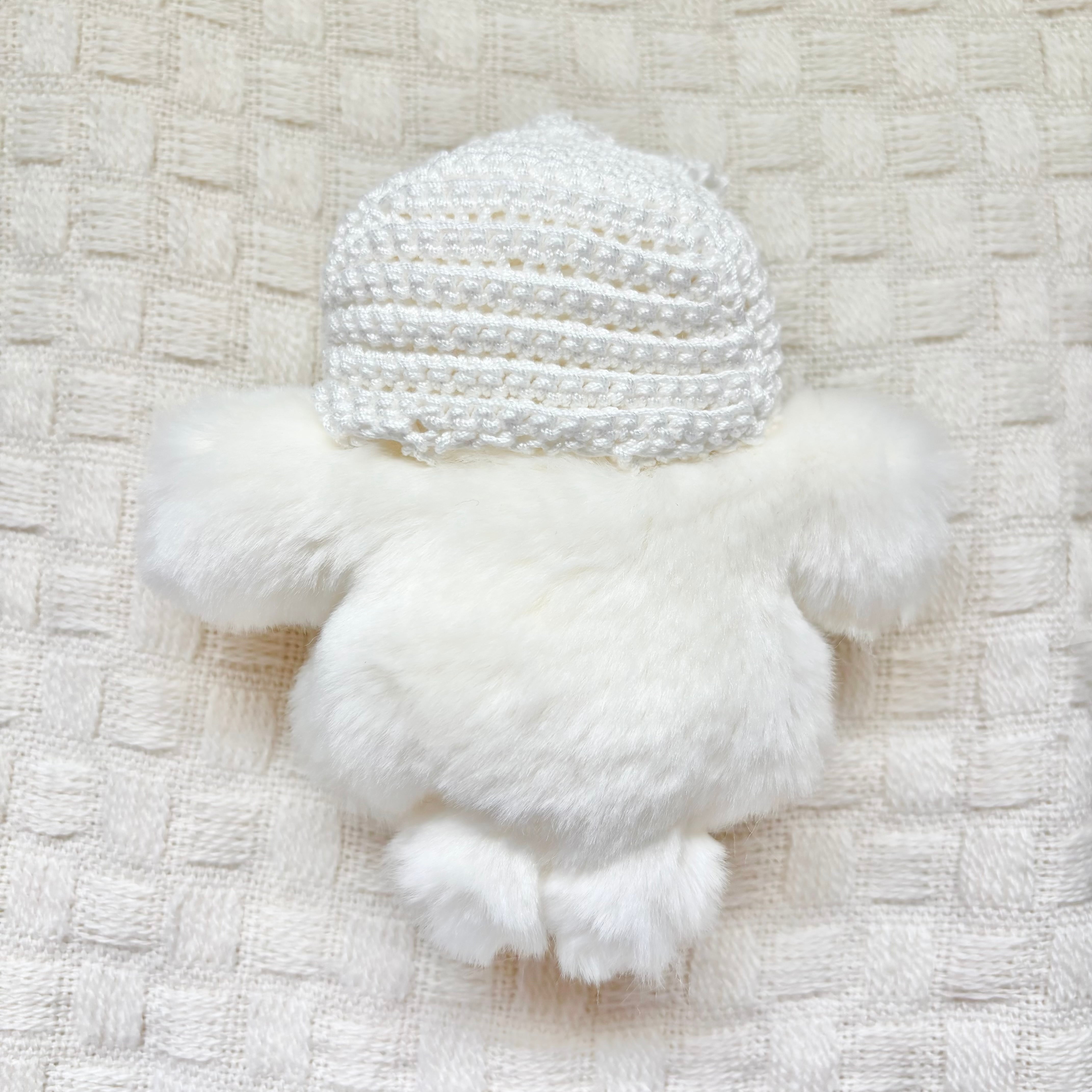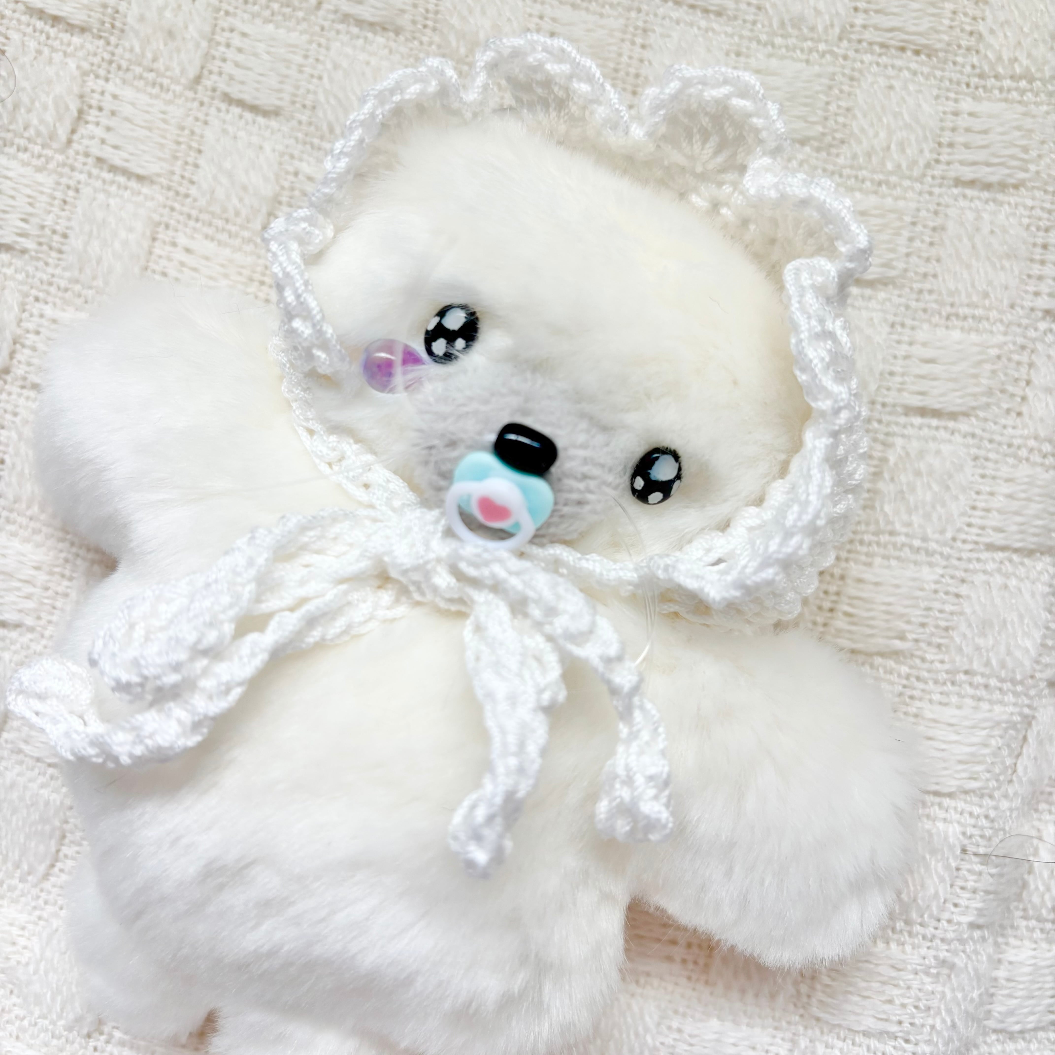 今回のボンネットは編んだタイプです