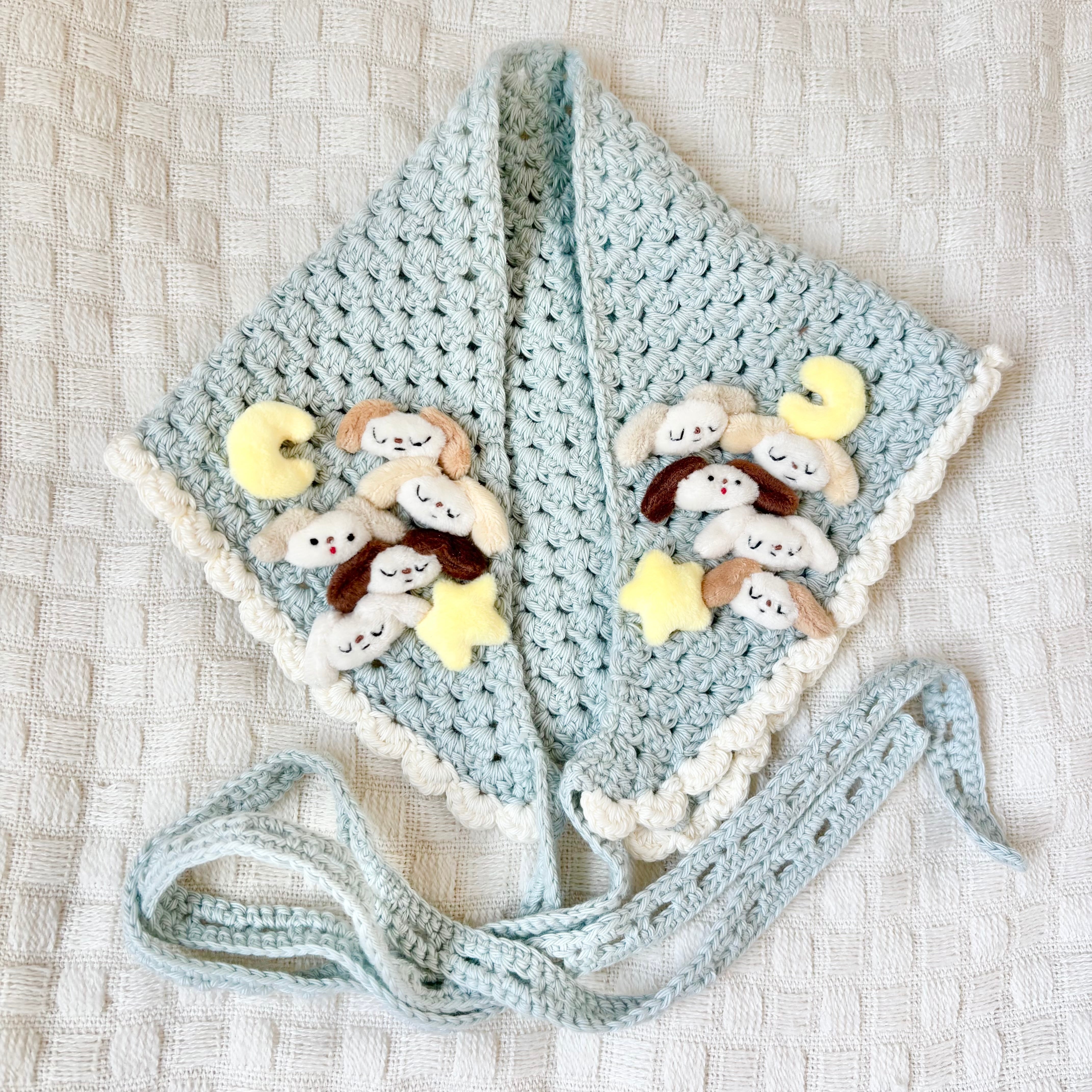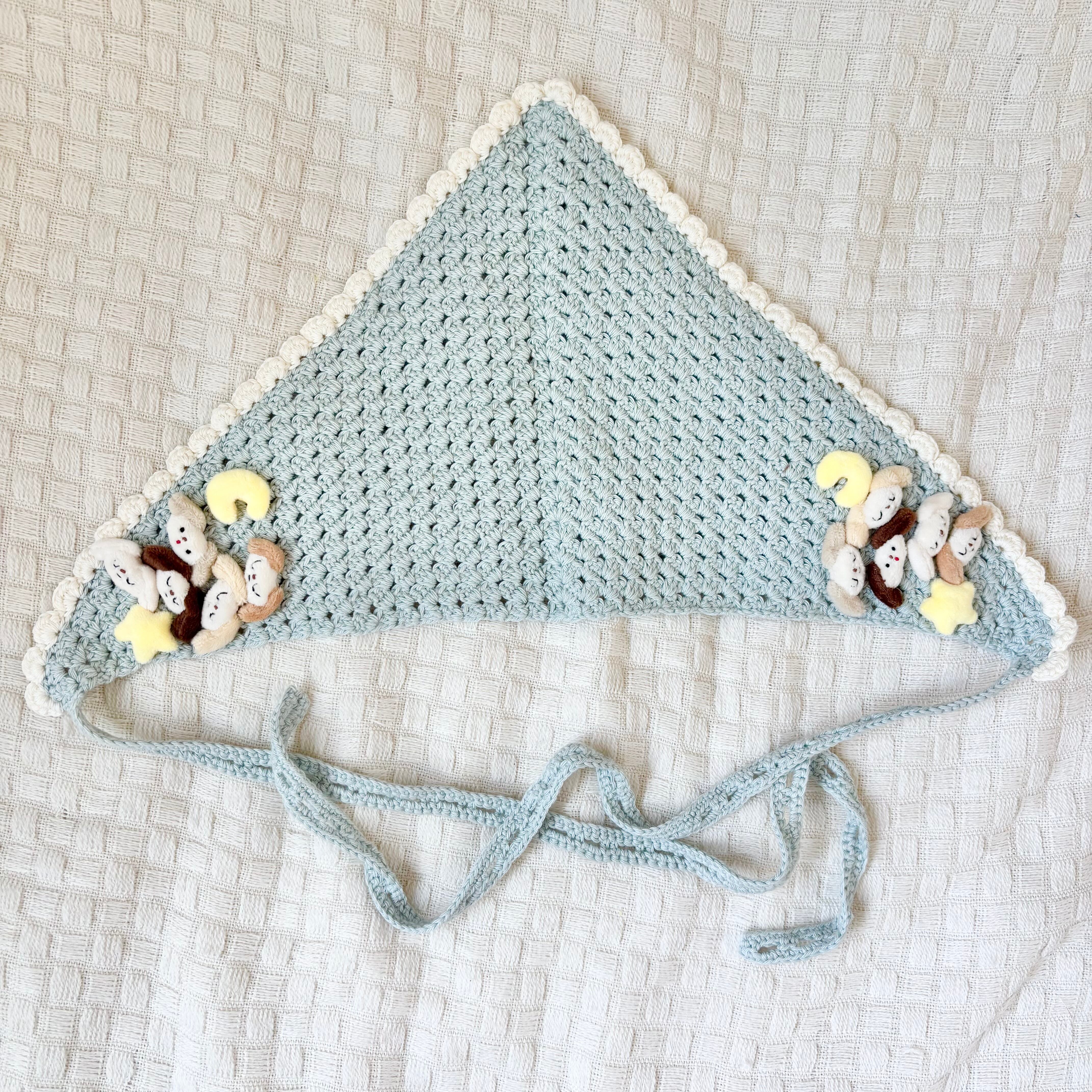 バブーシュカ いぬ ライトブルー×オフホワイト
